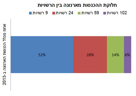 לפי נתוני הרשויות לשנת 2013, כ-102 רשויות, הכוללות את כל הרשויות הערביות והחרדיות (למעט בני ברק), נתמכות ביותר ממחצית תקציבן מהמדינה והארנונה מהווה רק 17% מהכנסותיהן ותעריפי הארנונה ברשויות אלה, כאשר התעריף הוא לרוב המינימום המוגדר בחוק – כל שינוי בארנונה ובפרט בארנונה ממגורים ישפיע עליהן יחסית מעט. יתרה מזאת, הרשויות הללו אחראיות לכ-6% מסך ההכנסה מארנונה בארץ! חלקן הקטן בעוגת הארנונה רק מחזק את ההבנה שהן האחרונות שיושפעו מהשינויים במבנה הארנונה.
