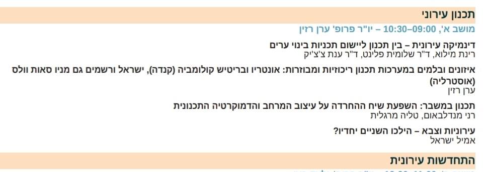 מושב ראשון – תכנון עירוני