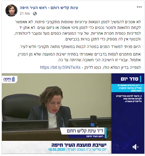 שקליש הודיעה שהתקציב לא יאושר כי צריך לעשות בו סדר יסודי, לא רק שלא הייתי מופתע, שמחתי – מבחינתי זו ההוכחה שחיפה נמצאת במסלול הנכון לתיקון נזקי העבר. אבל אז קראתי ביקורות שטענו שהמצב הזה הוא עוד אינדיקציה לכך שקליש לא מתפקדת – הרי אין תקציב, איך זה מעיד על משהו אחר למעט חוסר תפקוד? אותם קולות לא באמת יודעים מה קיבלה קליש מיהב או כמה קשה להוביל מהלך של שינוי יסודי בתקציב כאשר הגזבר שאיפשר את אי הסדר עדיין בתפקיד. ונזכיר שוב – לא קל לפטר גזבר ולא מחליפים גזבר רגע אחרי הבחירות.
