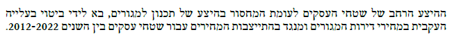 הערה: אמנם יש סעיפים אחרים שחוק שמדברים על העלאת התעריפים, אבל בפועל, האוצר רוצה למתן את עליות התעריפים של הארנונה שלא למגורים כך שיש סיכוי שהגידול הזה יהיה נמוך יותר.