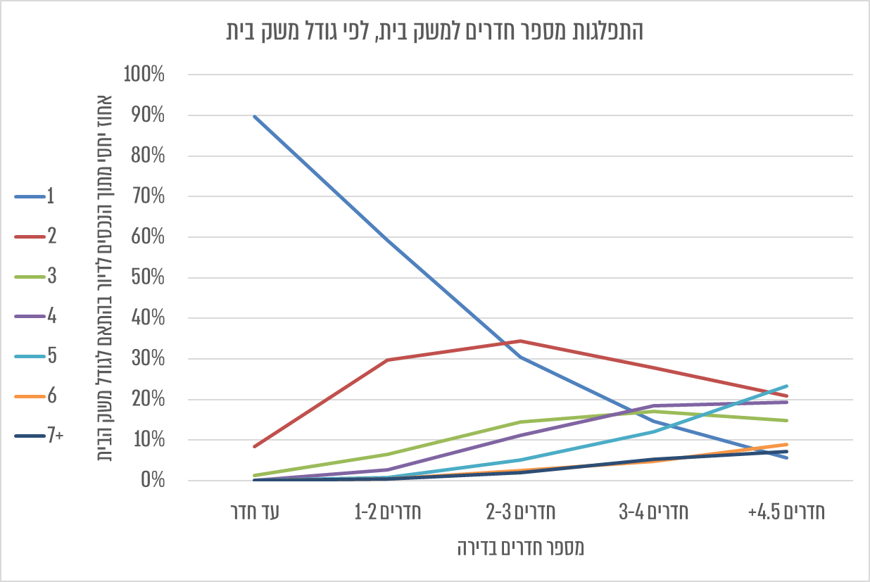 שילוב בין הנתונים מאפשר ליצור תמונה של "ההסתברות" לגודל משק הבית בהתאם למס' החדרים: