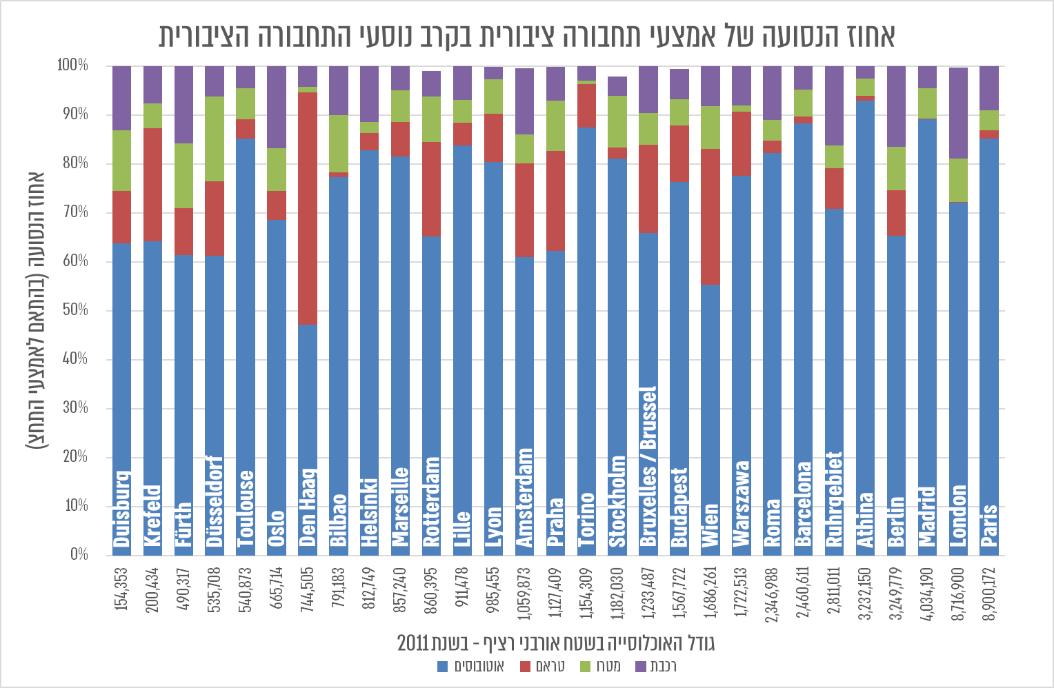 הטענה שהמצב של התחבורה הציבורית ישתפר שיהיה רק"ל/מטרו היא טענה נוחה למי שרוצה לדחות היפוך פירמידה, כי עד שהם יתרחשו יעברו כמה שנים וגם אז, תמיד יהיה את התירוץ של "עדיין אין רשת מלאה" או "אין מספיק נתונים". אבל בפועל לא צריך לחכות בכלל בשביל להבין מה יקרה שיהיה פה מטרו, רק"ל וכל 'הכיף' הזה – מספיק לבדוק מה קורה עכשיו באירופה.